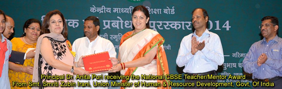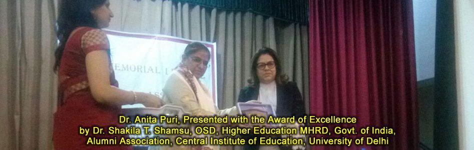 Shri. Himanshu Gupta, (IAS), Secretary, Central Board of Secondary Education presenting Dr. Anita Puri with the Most Influential Educator Award 2023