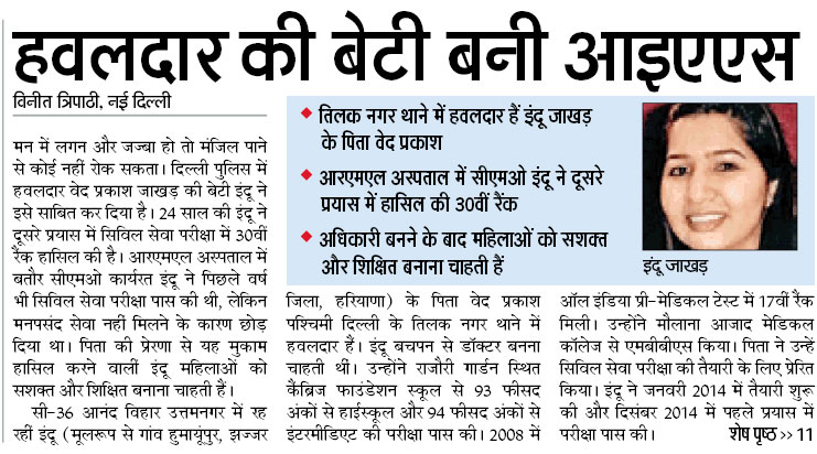 Indu Rani Jakhar an Alumni of the School, 2008 batch, has done the School honours. She has achieved 30th Rank in the Indian Administrative Services Civil Services Examination 2016. The entire Cambridge Fraternity salutes her achievement.