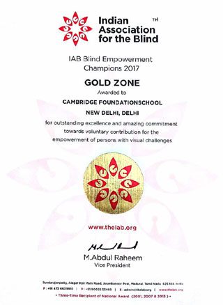 The School was honoured by the Indian Association for the Blind with the IAB Blind Empowerment Champions 2017 Award for outstanding excellence and amazing commitment towards voluntary contribution for the empowerment of persons with visual challenges.